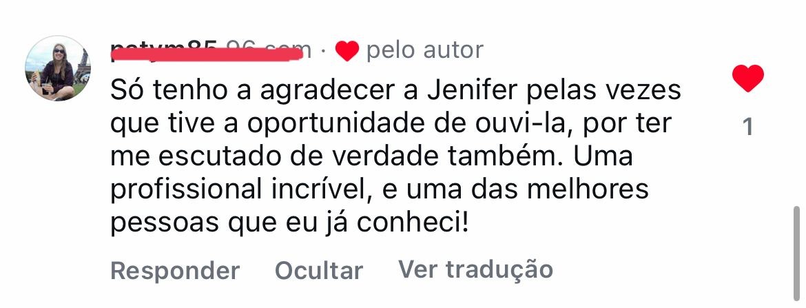 Sua abordagem única permite que indivíduos explorem e superem barreiras emocionais e espirituais, promovendo transformação e crescimento pessoal. Com dedicação à escuta cuidadosa, Jenifer guia as pessoas em suas jornadas de autoconhecimento, ajudando-as a viver plenamente e a aceitar suas verdades internas.